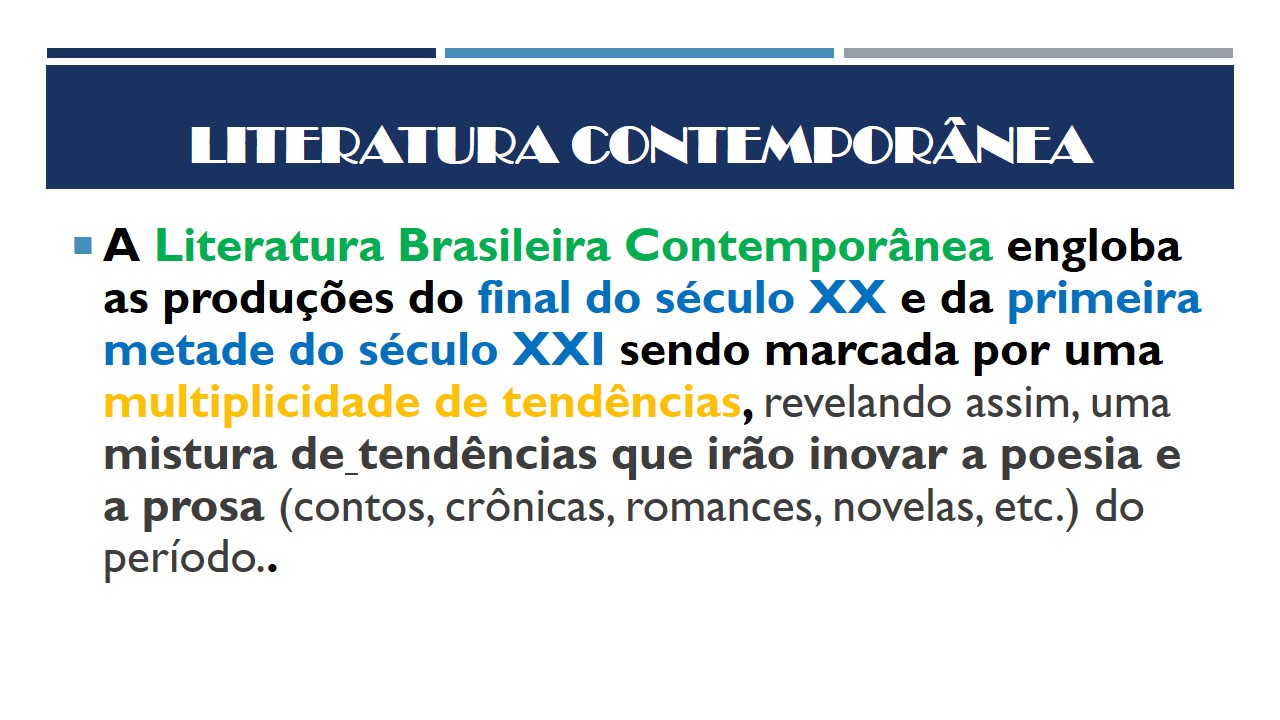 A literatura brasileira contemporanea. A literatura brasileira contemporanea engloba as producoes do final do seculo xx e da primeira metade do seculo xxi sendo marcada por uma multiplicidade de. A literatura brasileira contemporanea e em geral muito focada na vida urbana e em todos as suas caracteristicas. A solidao a violencia. Olhar hoje para a literatura brasileira contemporanea e analisar ou defini la nao e um trabalho simples.
