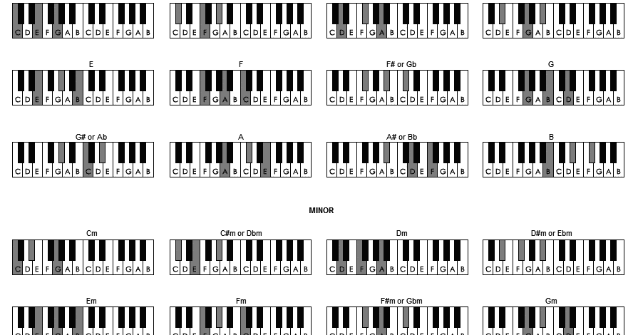 Beginner Piano Chords Master Chord List