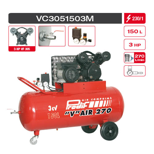 Prodif Compresseur Courroie Bi Cylindre V 200 L 3 Cv Vc3052003m
