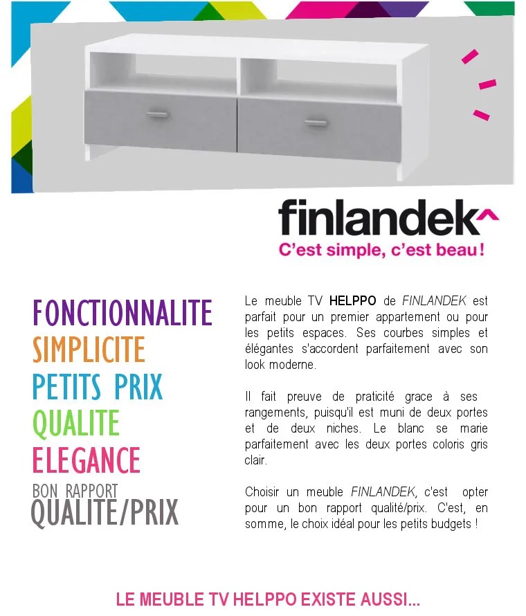 Finlandek Meuble Tv Helppo 95cm Blanc Et Gris Tous Mes Meubles