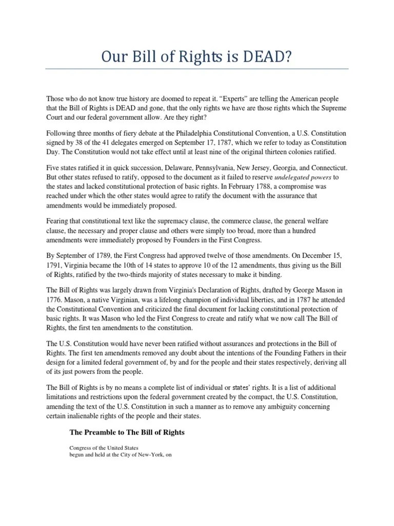 Our Bill Of Rights Is Dead Supremacy Clause United States