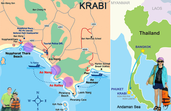 Krabi Map Ao Nang Railay Beach Dive The World Thailand
