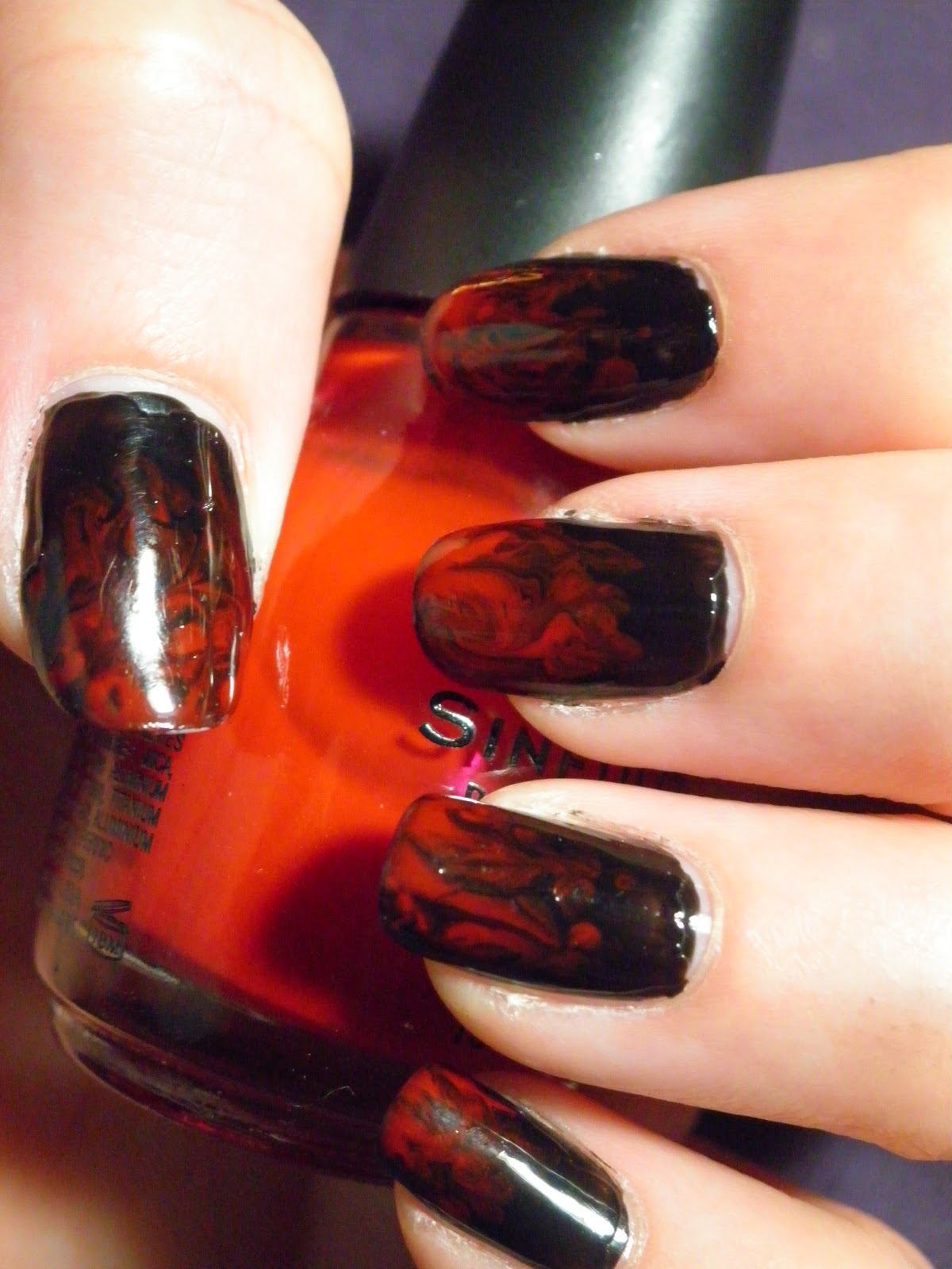 Red And Black Ombre Stiletto Nails